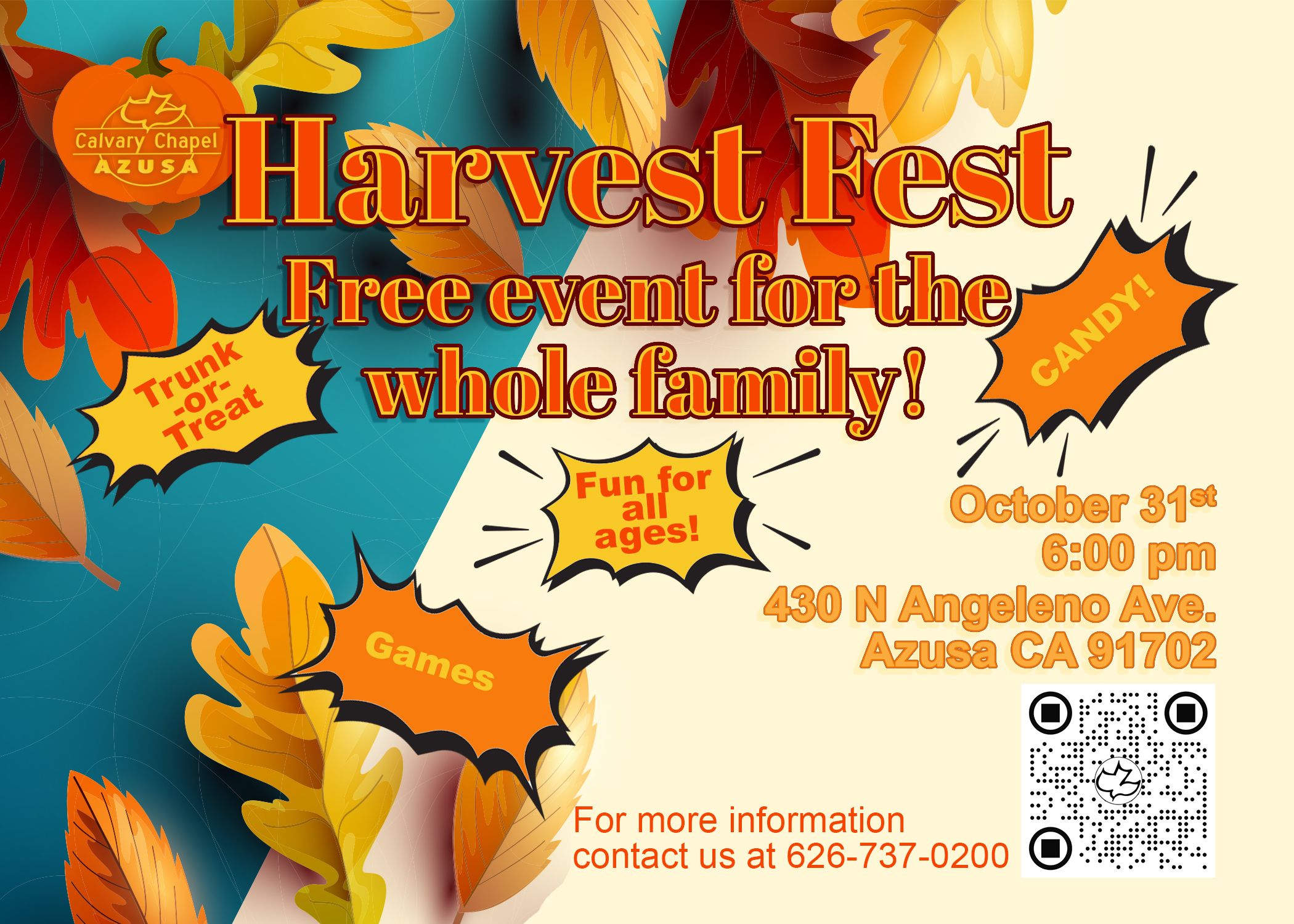 Join Calvary Life for Harvest Fest, a safe, fun, and FREE Halloween alternative! Bring your family, bring your friends, and come celebrate with us as we shine the light of Jesus together.