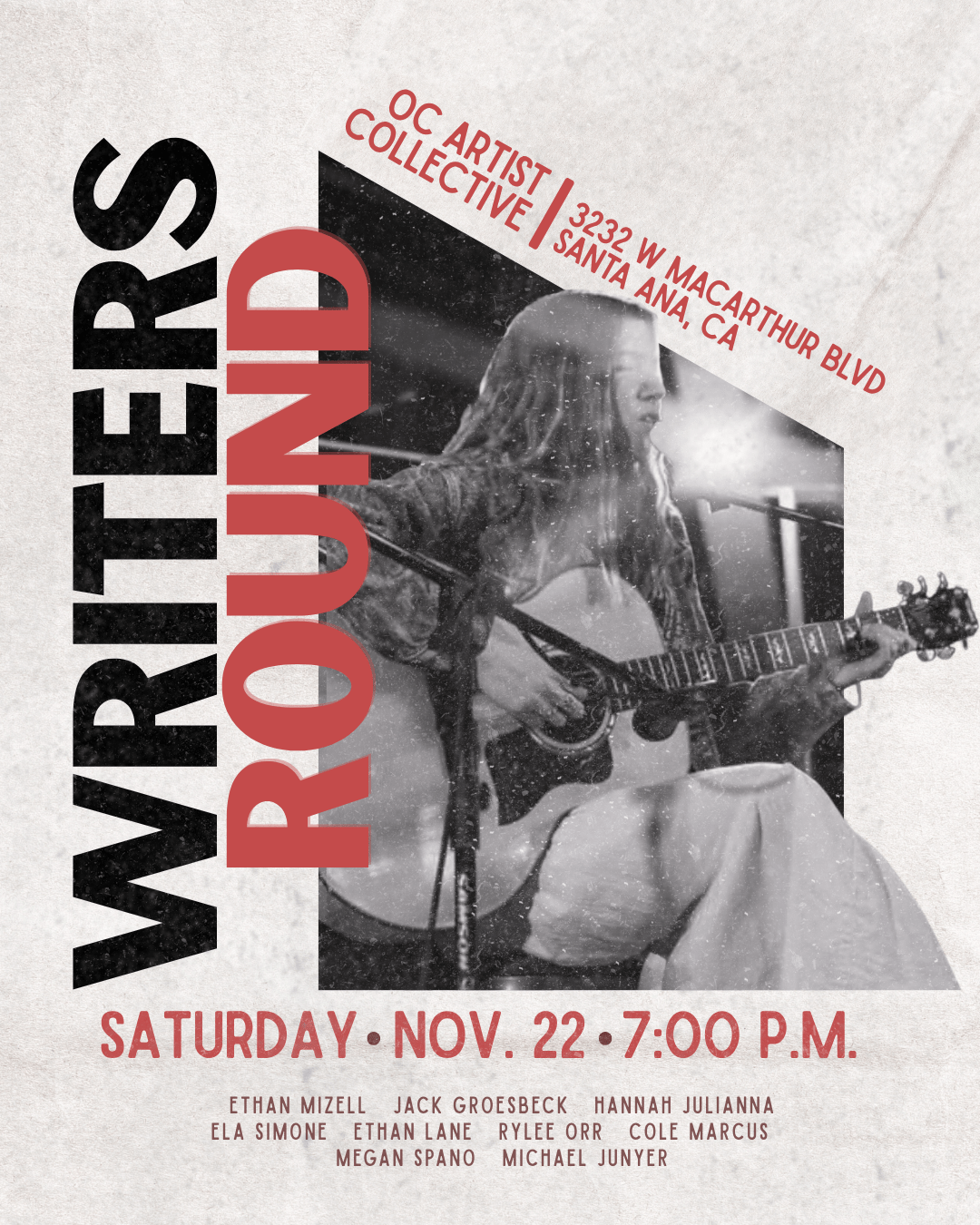 Join OCAC for our final Writers Round of 2025 as we wrap up the year with an incredible night of music and celebration. More than ten local Christian artists will take the stage with their original songs for an evening full of creativity, worship, and community.