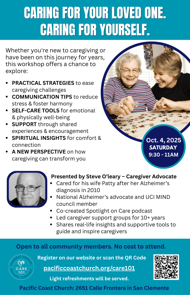 Popular speaker Steve O’Leary, experienced caregiver advocate and co-host of the Spotlight on Care Podcast, will share with humor and understanding of the caregiving life.