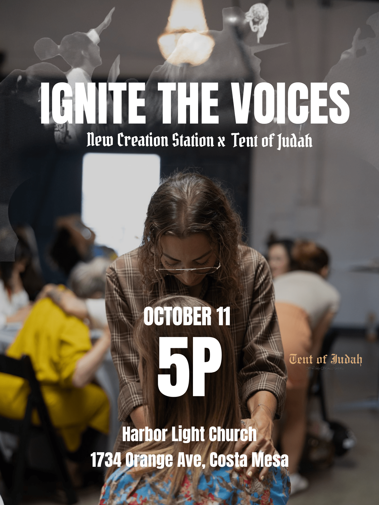 Free event for all ages happening October 11th at Harbor light Church in Costa Mesa. Hosted by Alysse Valiante from New Creation Station. Come experience a radical night of encounter – worship with Tent of Judah, recieve prayer, timely teaching and activation! Its time for voices to be released and ignited by the Holy Spirit to spread the gospel across this region. Its time to rise up! Join in and register today.