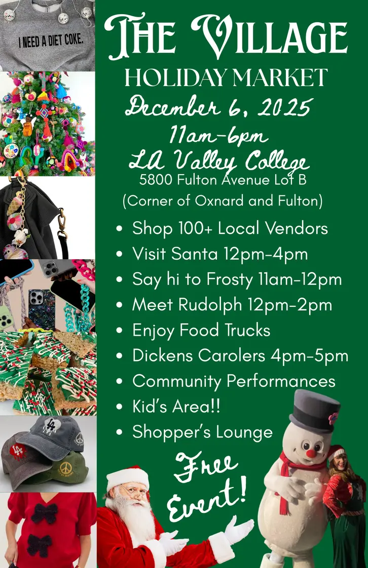 Visit the Village Holiday Market for a festive day of shopping and seasonal fun. This year’s event will take place on the grounds of Los Angeles City College.